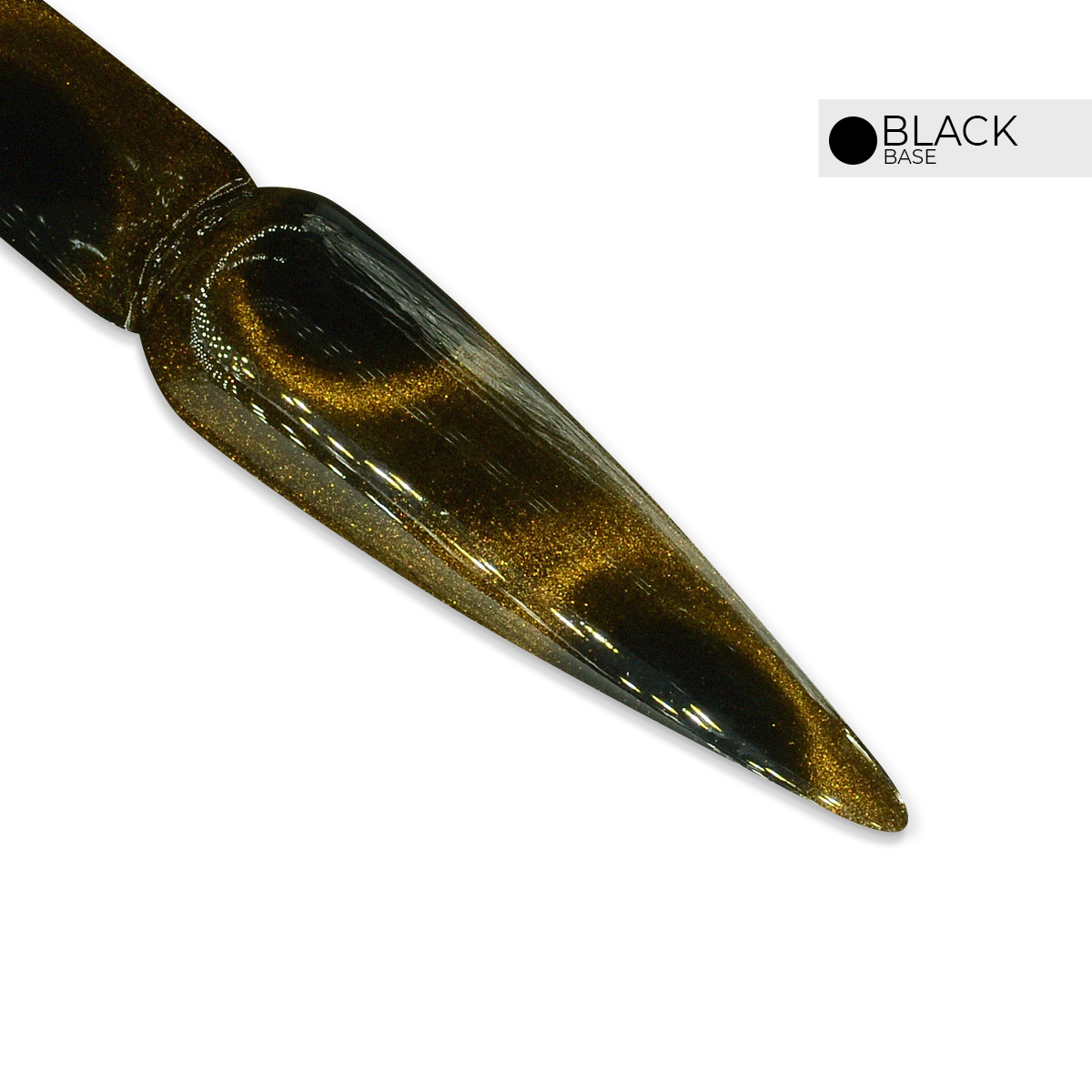 2. Apply one coat of Jet Black Gel Polish, then cure again under a UV/LED lamp. (A black gel polish base is applicable for 3D Top Cat Eye and LB Supernova 10D Cat Eye only; applying a black base or a different colored base is optional for 3D Cat Eye and 3D Mood Change Cat Eye, depending on the design you'd like to achieve.)