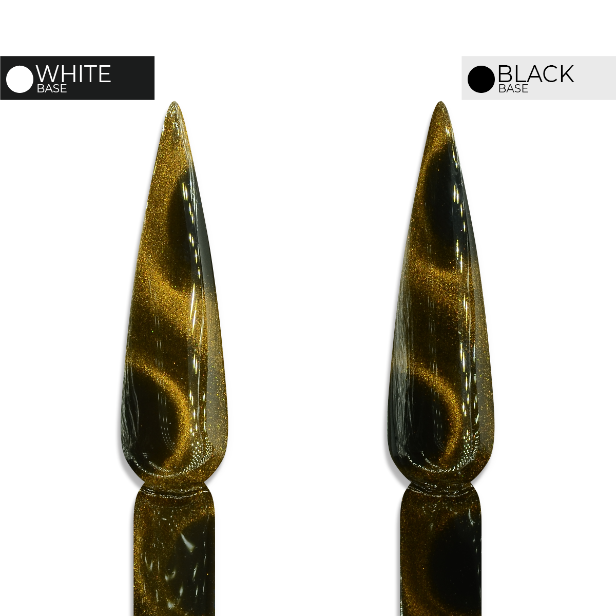 Create a Cat-Eye shimmer and glitter effect with these gel polishes! Apply them on top of a base color and be creative with your effects using our cat-eye magnets! Unleash your inner designer!