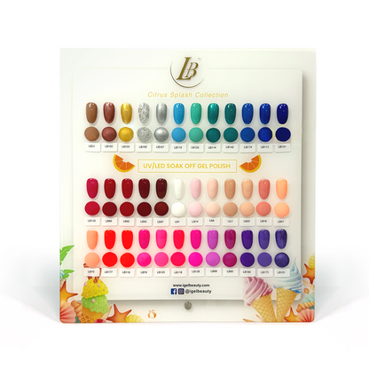 36 Colors (1 iGel 0.5 oz (15 mL) and 1 iLacquer 0.5 oz (15mL)) displayed on a glass board