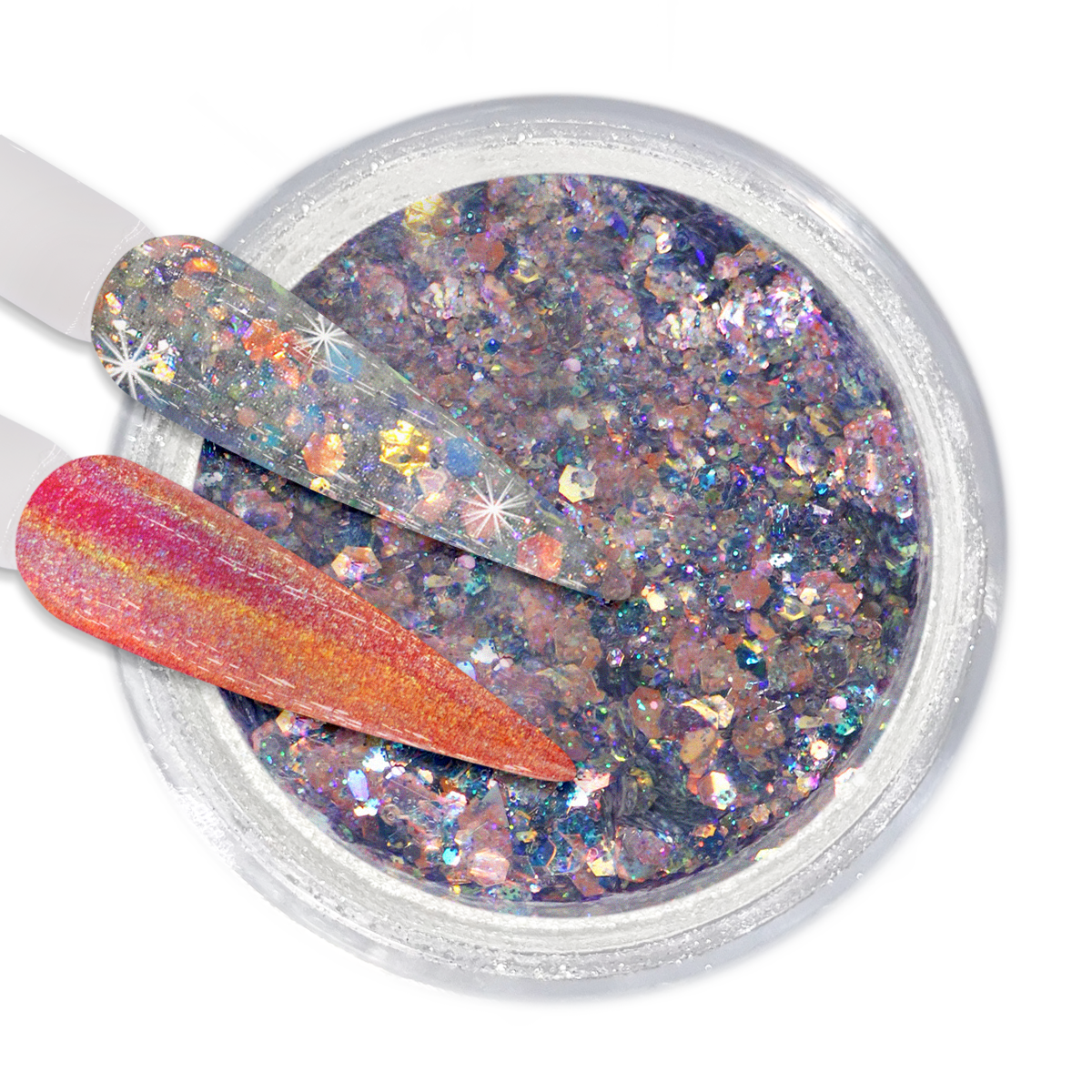 Create your own rainbow sugar effect or chrome effect with these Dip & Dap Holo Chrome Powders! Each jar contains mixed glitters that sparkle when you dip or dap in addition to having the finest holographic powder for a mirror holographic chrome finish!