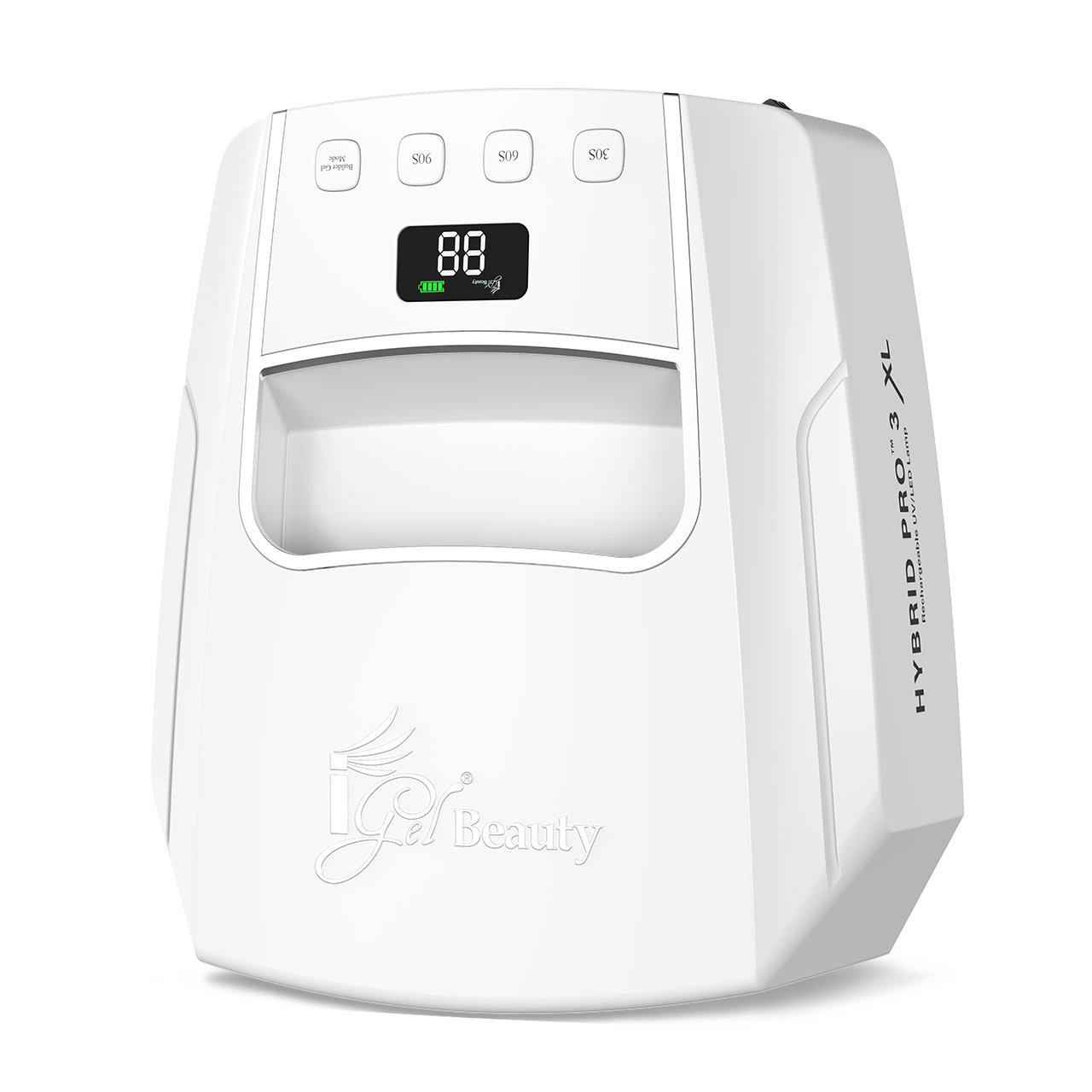 Maximize your full potential with iGel Beauty's HYBRID PRO 3.0 Wireless Rechargeable UV/LED Lamp, now available in XL! Enjoy state of the art sleekness with our lightweight and portable gel curing lamp while extending your reach for high-quality curing with 6 additional professional grade high performance UV/LED bulbs. The Hybrid Pro 3.0 XL's spacious design allows length loving nail enthusiasts an extended reach and more room capacity to cure. The 20% reduction in weight gives it a seamless efficient effort for all your travel needs.