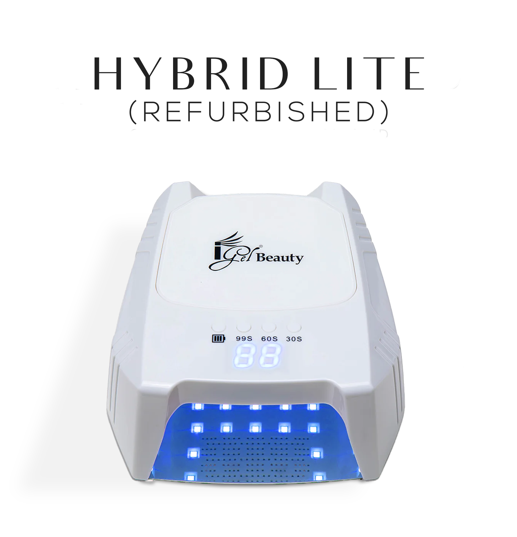 Introducing iGel Beauty's new Hybrid LITE Wireless Rechargeable UV/LED Lamp!It's the perfect nail lamp for nail tech beginners or professionals who are looking for an economical yet efficient lamp! It has the same ability to cure all five fingers with its strategically placed UV/LED bulbs! It is built to have ease with its front view buttons, motion sensor 30 sec, 60 sec and 90-second timer, removable tray, and a 4800 mAh battery!