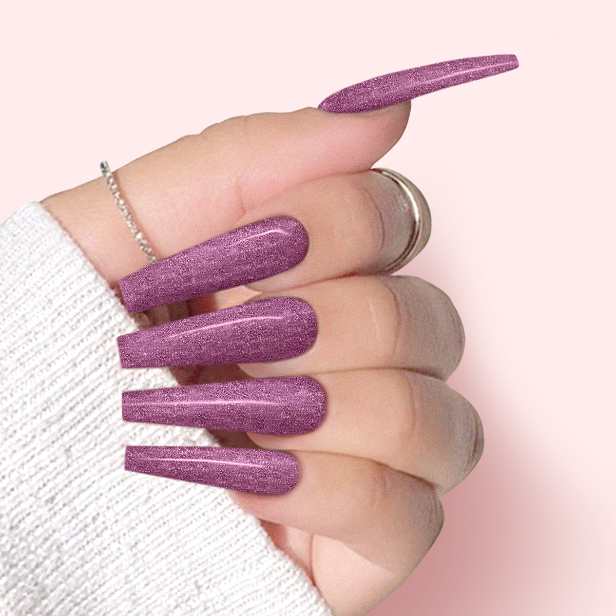 Let your nails Make You Miss Me by remembering the shade and beauty of your nails! Its purple with small multicolor glitter is memorable enough!