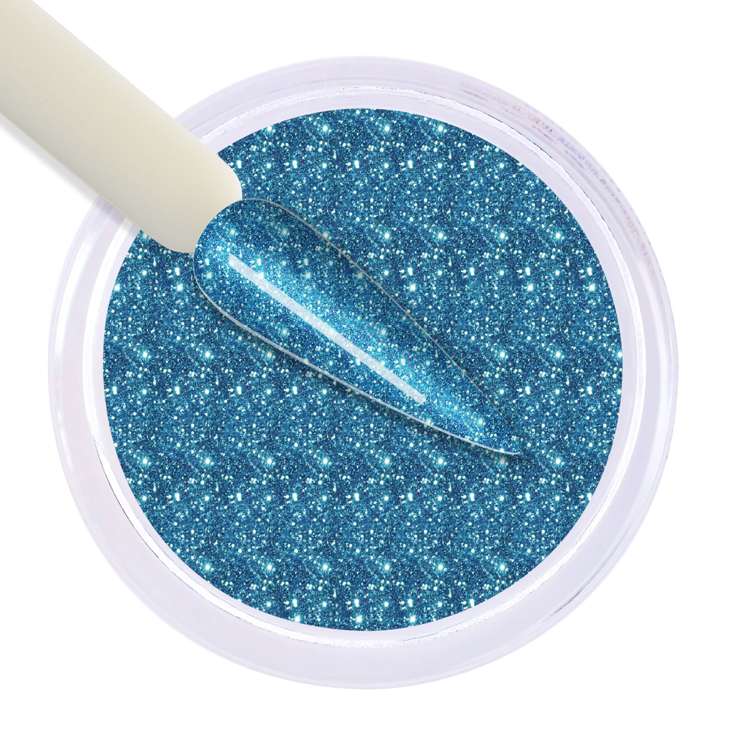 Finish: GlitterColor: Sky Blue with medium Blue glitterOccasions: Party, Summer, WinterProduct Size: 2 oz (56g)Product Type: Dip & Dap PowderMADE IN USA